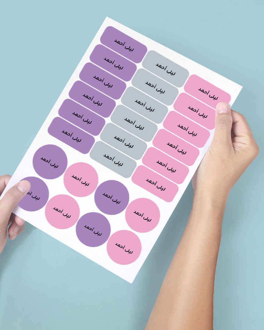 مجموعة الستيكرات مكونة من 26 ستيكر بأسماء أطفالك بألوان وتصاميم يحبونها 💖